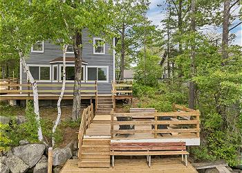 "Had an exceptional stay and would return. Our group of eight adults especially appreciated the peaceful lakefront setting. We enjoyed daily views of loons swimming by, both from inside the house and the outdoor spaces. The lake access was excellent, with a sandy beach and dock that made swimming and paddling easy and enjoyable. Never bothered by excessive boats traffic or wakes you can experience on Winni. Main floor open layout provides plenty of space for larger groups. Expansive outdoor decking with plenty of furniture a key feature to enjoying this location. The home was exactly as described: clean upon arrival, well-maintained, and equipped with everything we needed, including comfortable beds. Customer service provided by At the Lake was top-notch, providing detailed information for arrival and use of AC, grills, etc. "