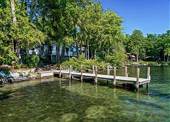 With a large deck looking out to the lake and 40' dock with steps leading into crystal clear waters you won't want to leave! The owner will allow (1) boat up to 24' in length on the dock. A landscaped path leads down to a gradual entry into the water with a sandy bottom which is great for swimming! You can also enter the water from the stairs off the dock. The owner allows use of 2 canoes which are included. There is parking for 4 cars (2 in the driveway and 2 in the garage).
