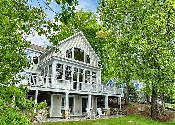 This Moultonborough lakefront home sleeps 12 and is the perfect getaway for family and friends. Whether you're enjoying the outdoors, relaxing by the water, or savoring the comforts of the spacious interior, it's a place where lifelong memories are made! Nestled near the edge of the lake, this beautiful home offers 100 feet of private lakefront with breathtaking views across Center Harbor bay. Enjoy the coveted western exposure for spectacular sunsets from the deck that runs the length of the house. Whether you're grilling a meal or simply relaxing with a drink in hand, the views are sure to captivate you.