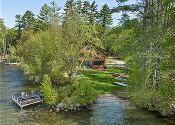 Waterfront vacation rental on Lake Winnipesaukee in Braun Bay, Moultonborough NH offering beautiful water views, private dock access, and modern open concept living in one of New Hampshire's most sought after Lakes Region locations.